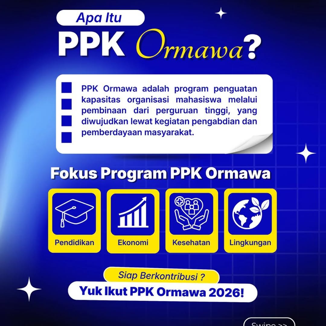 PPK Ormawa merupakan program pembinaan organisasi mahasiswa yang difasilitasi oleh perguruan tinggi untuk mendorong mahasiswa berperan aktif dalam kegiatan pemberdayaan masyarakat. Melalui program ini, mahasiswa dapat merancang dan melaksanakan berbagai kegiatan inovatif yang berfokus pada bidang pendidikan, ekonomi, kesehatan, dan lingkungan. Dengan pendampingan dari kampus, kegiatan yang dihasilkan diharapkan mampu memberikan solusi nyata terhadap berbagai permasalahan di masyarakat.