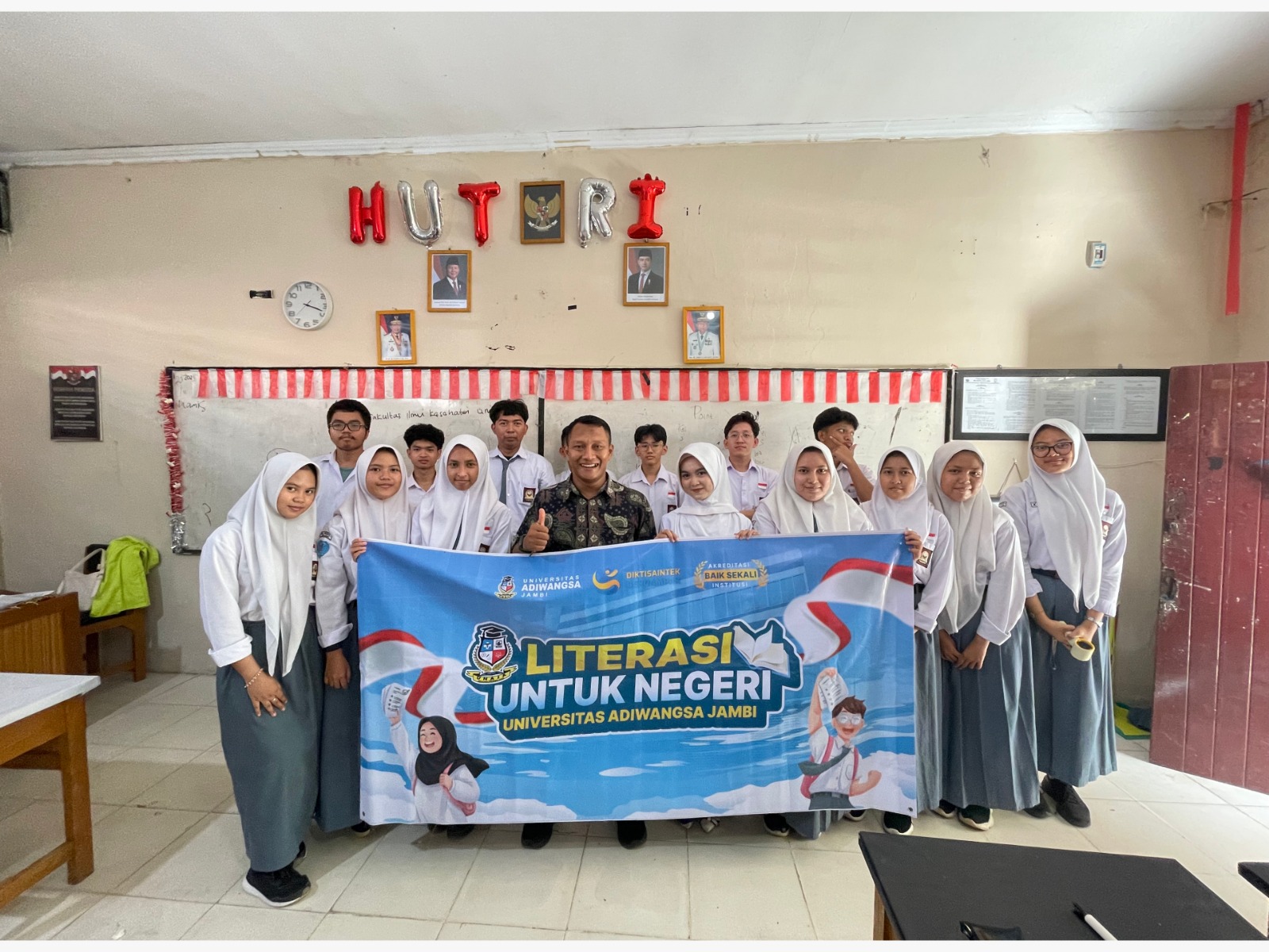 Universitas Adiwangsa Jambi (UNAJA) kembali menjalankan program Literasi Untuk Negeri sebagai bagian dari komitmen kampus dalam meningkatkan kualitas literasi dan motivasi pendidikan bagi siswa sekolah menengah. Pada kesempatan kali ini, UNAJA bersama Program Studi Hukum hadir di SMA Adhiyasa Jambi untuk memberikan edukasi dan motivasi kepada para siswa. Program literasi ini merupakan bagian dari pengabdian kepada masyarakat serta wujud kontribusi UNAJA dalam mencetak generasi muda yang cerdas, kritis, dan berkarakter.