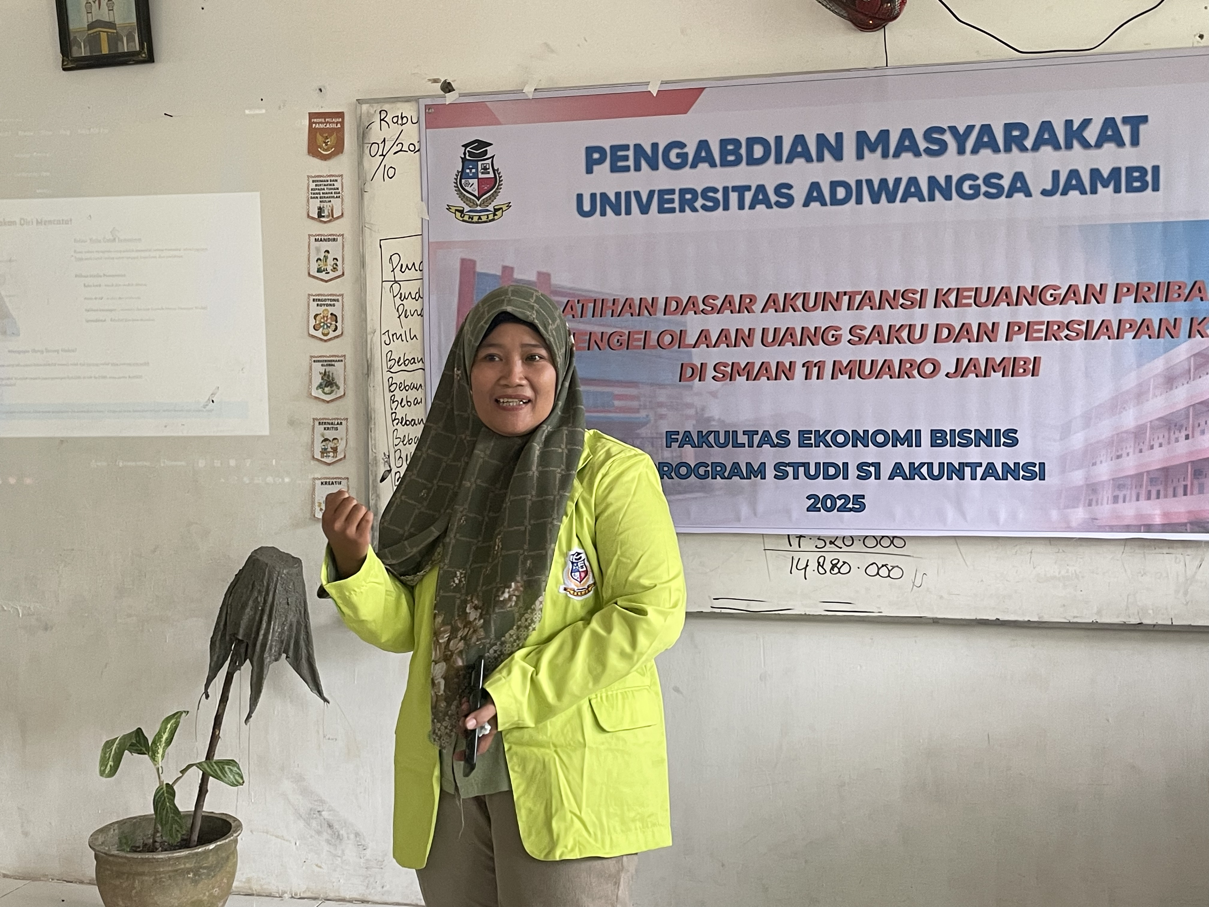 itas Adiwangsa Jambi (UNAJA) kembali menunjukkan kepeduliannya terhadap peningkatan literasi keuangan di kalangan pelajar. Melalui kegiatan Pengabdian kepada Masyarakat (PkM), mereka melaksanakan Pelatihan Dasar Akuntansi Keuangan Pribadi untuk Pengelolaan Uang Saku dan Persiapan Kuliah di SMAN 11 Muaro Jambi. Kegiatan ini disambut antusias oleh para siswa yang ingin belajar bagaimana cara mengatur keuangan secara efektif sejak dini.