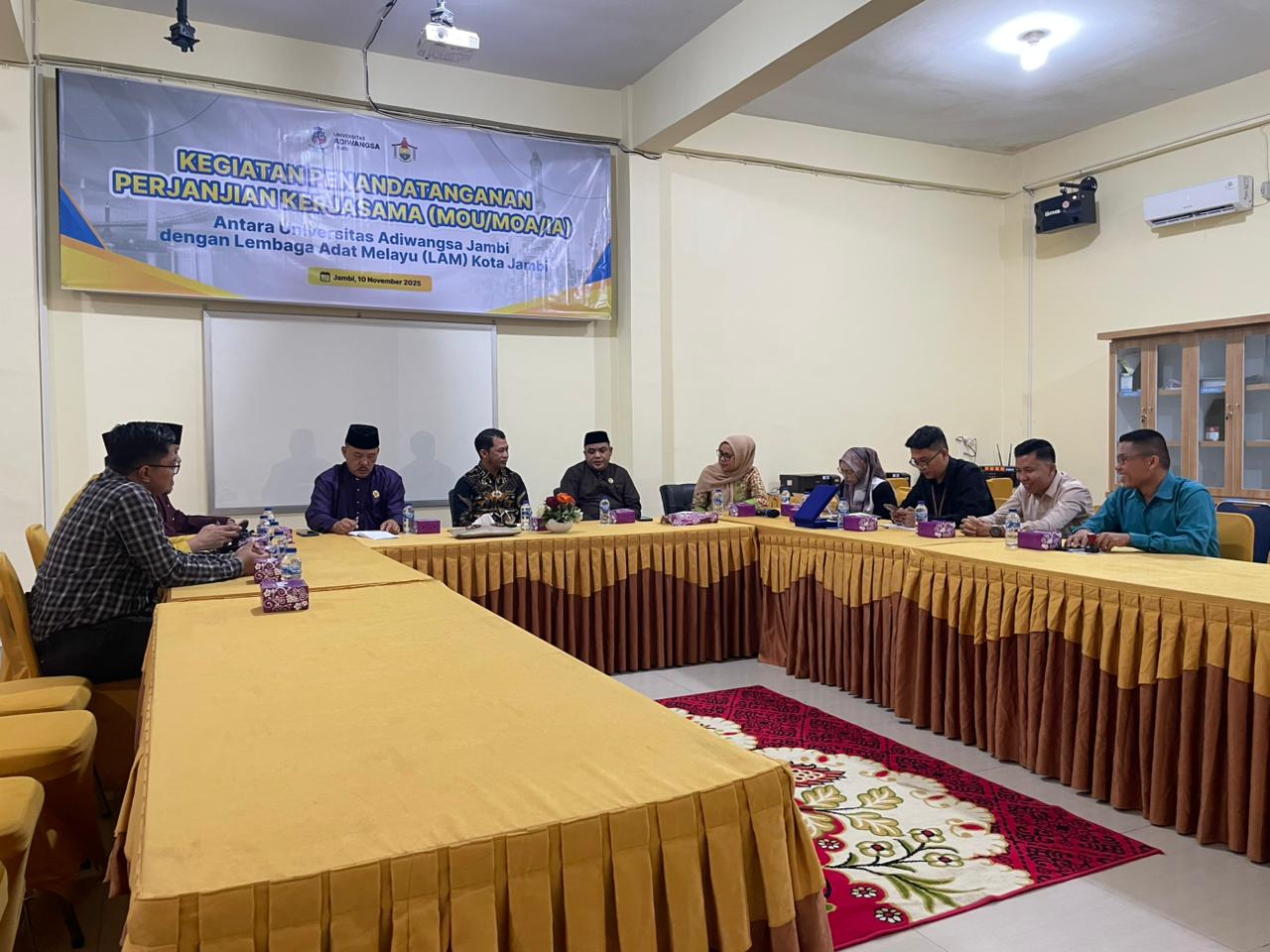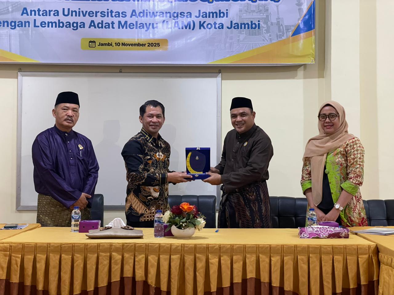 Universitas Adiwangsa Jambi (UNAJA) kembali menunjukkan komitmennya sebagai kampus swasta terbaik di Jambi dengan menjalin kerja sama strategis bersama Lembaga Adat Melayu (LAM) Kota Jambi. Penandatanganan perjanjian kerjasama (MoU/MoA/IA) tersebut berlangsung di Aula UNAJA dan disaksikan langsung oleh jajaran pimpinan kampus serta para pengurus LAM Kota Jambi. Kolaborasi ini diharapkan mampu memperkuat sinergi antara dunia pendidikan dan lembaga adat dalam melestarikan nilai-nilai budaya Melayu di Kota Jambi.