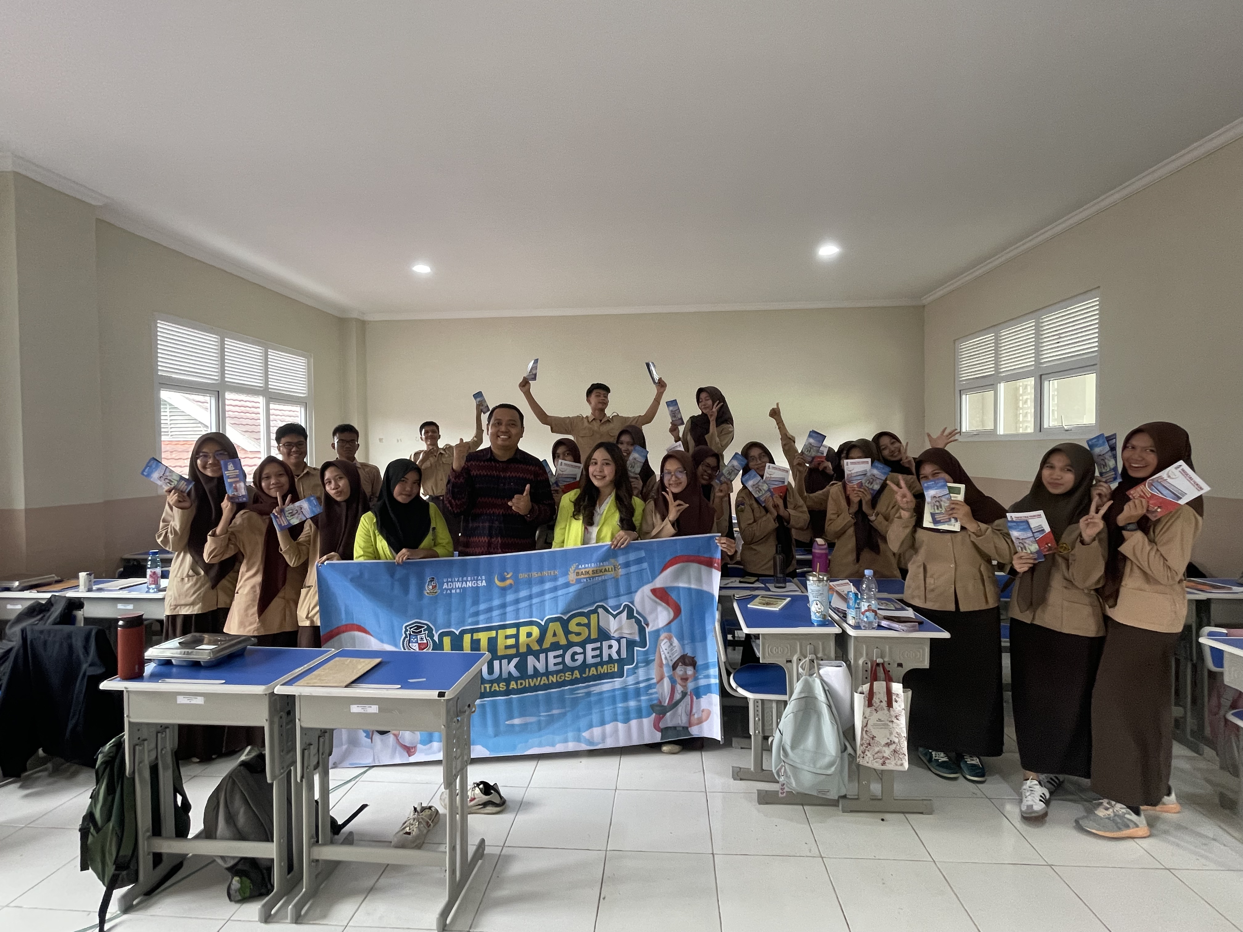 Universitas Adiwangsa Jambi (UNAJA) kembali menjalankan program Literasi Untuk Negeri sebagai bagian dari komitmen kampus dalam meningkatkan kualitas literasi dan motivasi pendidikan bagi siswa sekolah menengah. Pada kesempatan kali ini, UNAJA bersama Program Studi Hukum hadir di SMA Adhiyasa Jambi untuk memberikan edukasi dan motivasi kepada para siswa. Program literasi ini merupakan bagian dari pengabdian kepada masyarakat serta wujud kontribusi UNAJA dalam mencetak generasi muda yang cerdas, kritis, dan berkarakter.