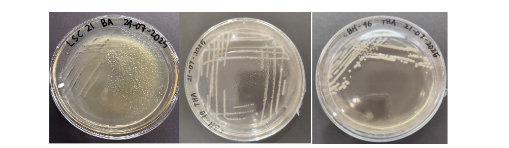 Selain itu, tiga isolat terbaik menjalani identifikasi molekuler menggunakan metode 16S rRNA gene sequencing untuk menentukan spesies dan hubungan kekerabatannya melalui analisis BLAST dan filogenetik. Identifikasi molekuler mengungkap bahwa isolat SbH46 memiliki kemiripan 99,22% dengan Bacillus sp., SbH49 mirip 82,56% dengan Bacillus amyloliquefaciens, sementara isolat LcS21 memiliki kemiripan 98,66% dengan Bacillus subtilis.